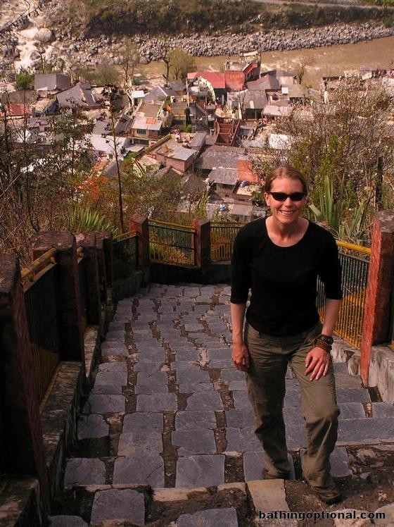 Ashe on her way up to one of the hilltop temples over Chamba.