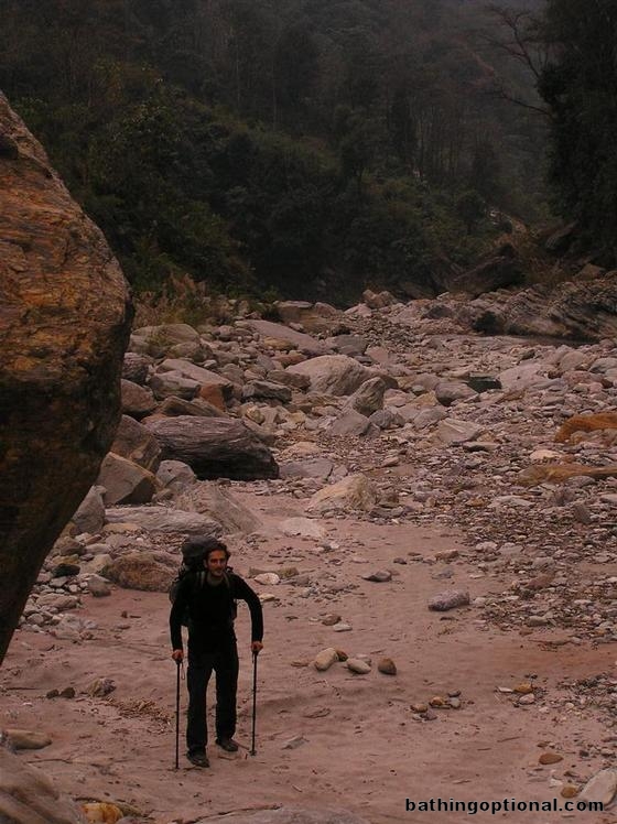 The final bit of the trail followed the beachy shores of the river towards the hotsprings. India, Tashiding - 20-Feb-07