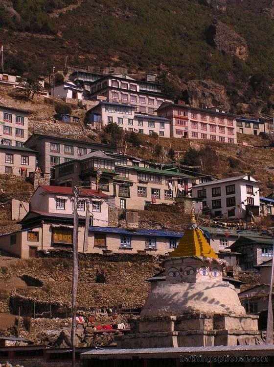 Day 2: Monjo to Thami.\r\nNamche Bazaar, once a very, very simple and small Sherpa settlement, is now a large and happening town and the the main base for trekkers in the Everest region. Nepal, Mt. Everest - 01-Apr-07