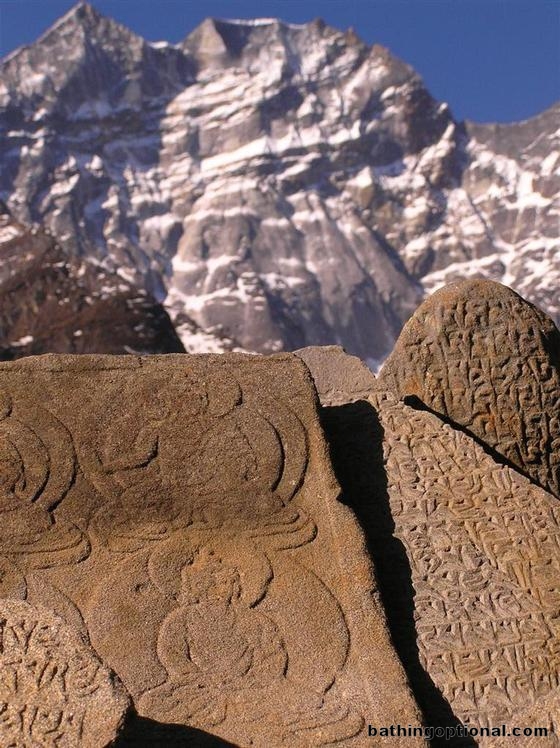 Day 3 : Thami to Tengboche.\r\nEvery once in a while along the trail we would come to a pile of stones like these, left as both markers and sacred offerings. Nepal, Mt. Everest - 02-Apr-07