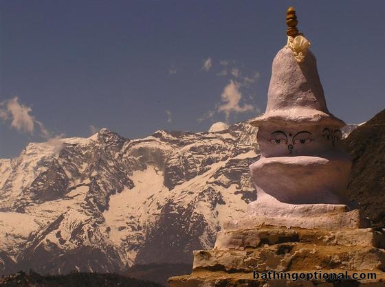 Day 4 : Tengboche to Dingboche.\r\nYet another stupa high along the trail. Nepal, Mt. Everest - 03-Apr-07