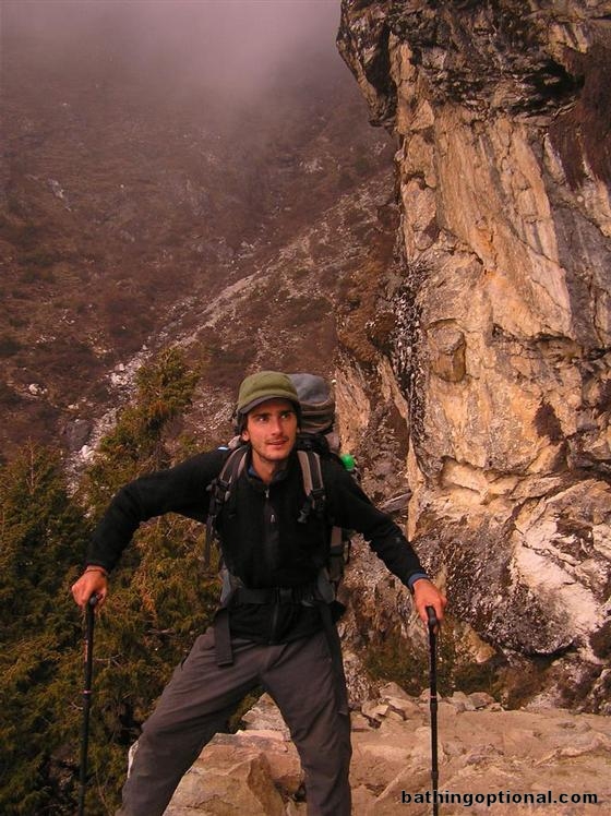 Day 8 : Dugla to Phortse.\r\nMaciej on the cliff trail.