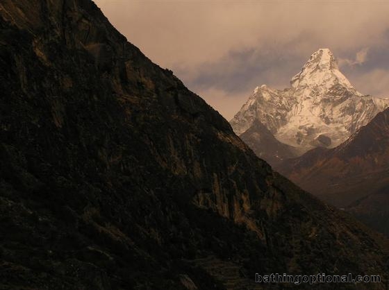Day 13 : Machermo to Namche Bazaar.\r\nWalking back out of the Gokyo Valley, descending past Ama Dablam down to Namche Bazaar. Nepal, Mt. Everest - 12-Apr-07