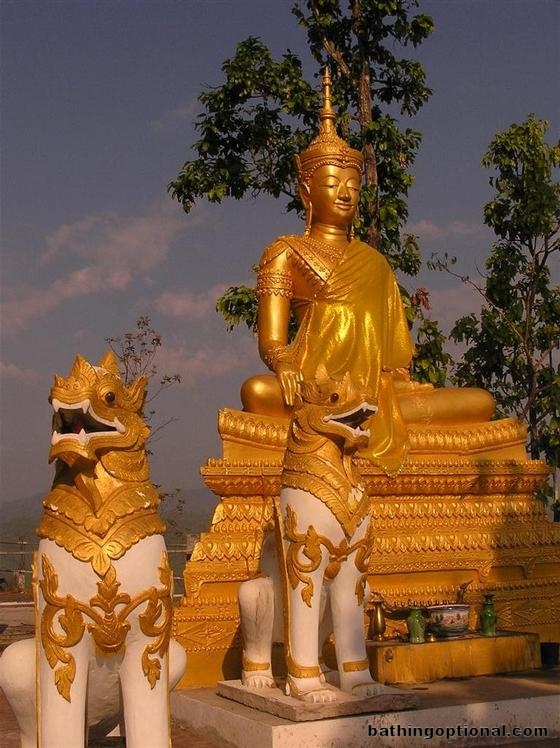 Beautiful Shan lions and Buddha on the hill. Again, very Burmese. Thailand, Mae Hong Son - 01-May-07