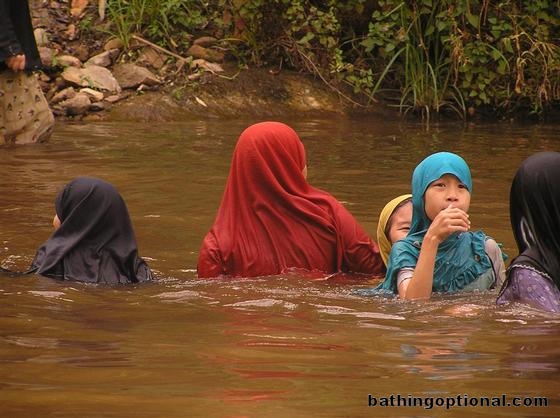 Children from a nearby Muslim village play in the pool under the waterfall. Thailand, Pai - 02-May-07