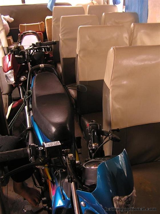 Our bus from Huay Xai to Luang Nam Tha double as a vehicle carrier. Motorcycles filled the aisle and the roof was covered in them! Laos, Louang Namtha - 06-May-07
