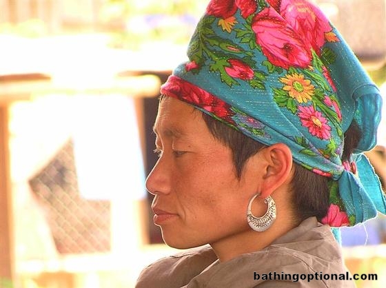 Laos tribal Akha people are easily identified by their headscarves.
