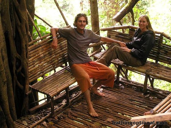Relaxing in a bamboo shelter on our way down to the falls.