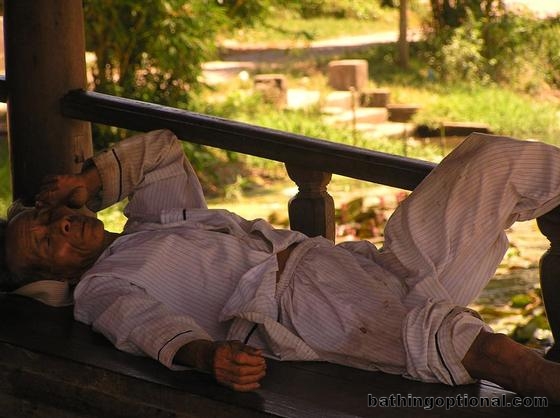 The old, wooden bridge seems to be the local hang out spot for elderly men. Vietnam, Hue - 02-Jun-07
