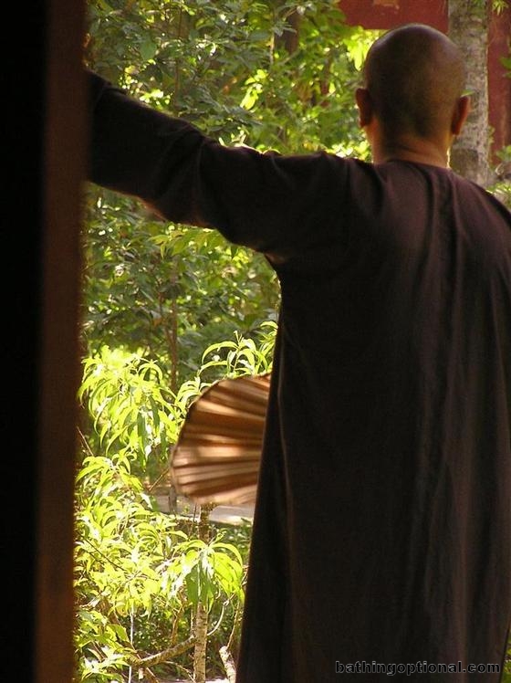 Brown-robed monk at the temple.
