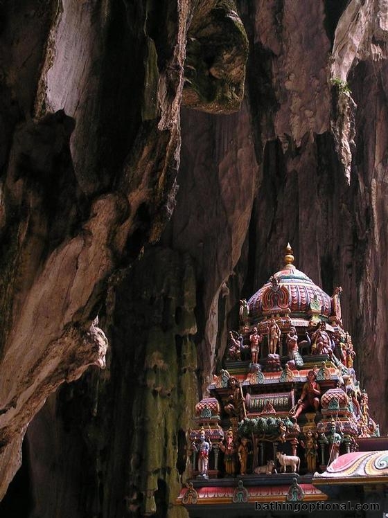 The main Hindu shrine inside the heart of the Batu Caves, site of one of Malaysias largest annual festivals with more than 1 million devotees attending.