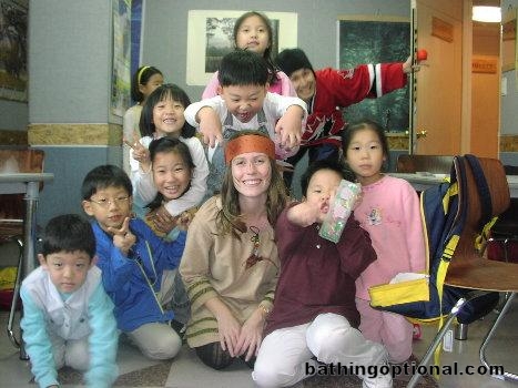 Halloween does not go unnoticed here in Korea. As with many things western, Halloween has been welcomed by the Koreans. Also accepted are Pizza Hut, Nike, McDonalds, Roots (for all you Canadians), and any other major brand one could think of. There have been those times when anti-American sentiments have been high and all the above have been boycotted, but those were short-lived. At the end of her time here in Seoul, Ashe prepares to celebrate her second Halloween in Korea, but with a different group of kids. South Korea, Seoul - 31-Oct-01