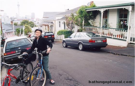 We rented a couple bikes on the worst of days in Auckland -- 90 km/h winds were against us! New Zealand, Auckland - 13-Nov-02