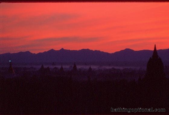 We got up before 5am our first day in Bagan, rode our bikes a few miles down the road, climbed a temple building and enjoyed the sunrise... Myanmar, Pagan - 19-Jan-03