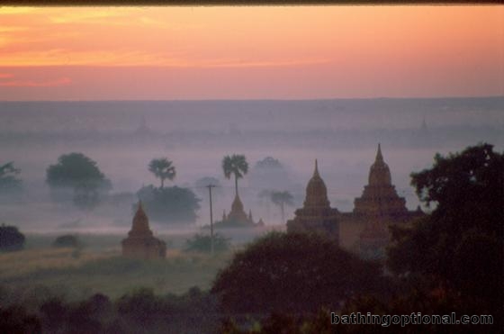 And as the sun rose even higher into the sky (about one hour following our first glimpse of the sun), a mist began to rise from the cool earth. It was an amazing sight. Myanmar, Pagan - 19-Jan-03