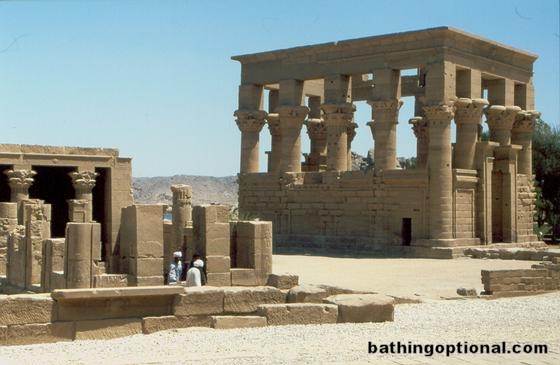 Temple buildings. The entire Temple of Philae complex is all built on an island on the Nile River. Egypt, On the Nile - 27-Apr-03
