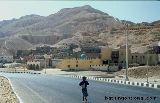 Out in these deserted roads this boy was the only traffic we saw for most of our trip. Egypt, El-Uqsor (Luxor) - 28-Apr-03