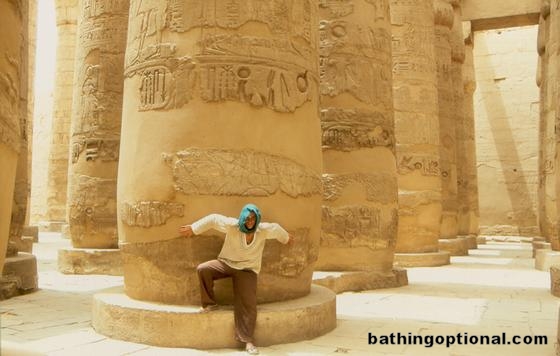 Maciej doing some kind of pose at one of Karnaks pillars.