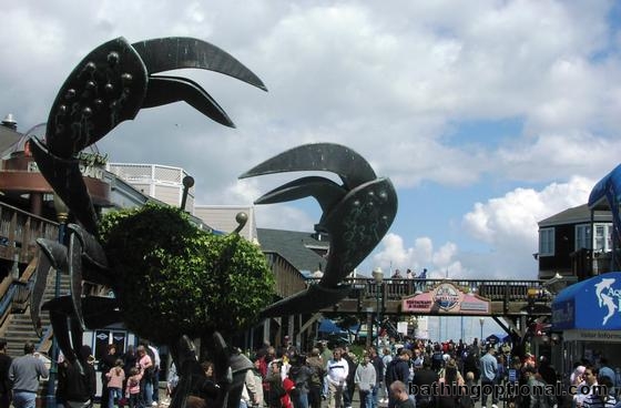 Giant crab statue at the land end of Pier 39.