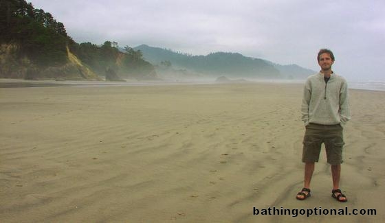 Maciej on misty and mysterious Oregon beach.