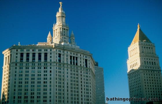 Not far from the Seaport docks is New Yorks Civic Center. Here, the Municipal Building and U.S. Courthouse can be seen. United States, New York City - 10-Oct-03