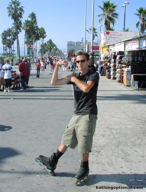 Maciej showing off his stuff along the boardwalk.