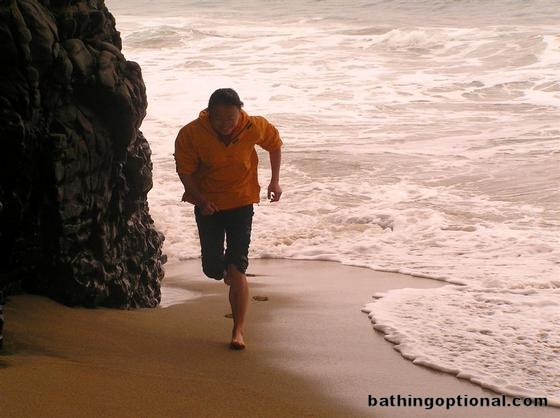 Cissy running to beat the waves!