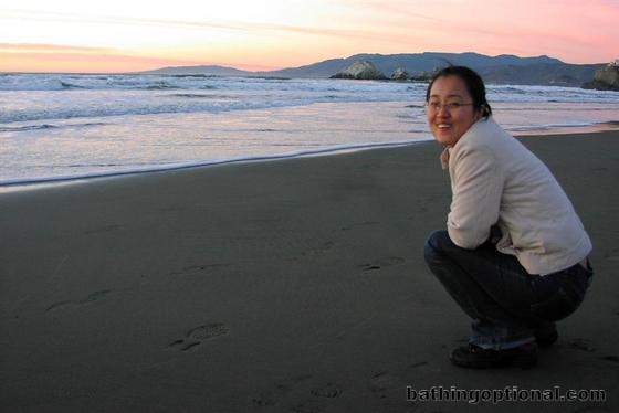 Yurhee enjoying the sunset at Ocean Beach.