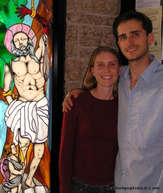 One of the big reasons for our visit to Winnipeg -- the wedding of Maciejs best friend Phil and his new wife Brenda. Here we are at the church before the rehearsal.