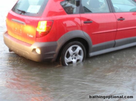The thunderstorm really turned the streets into rivers.