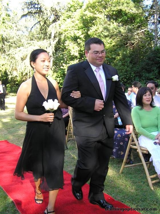 Jen and Mark going up the aisle.