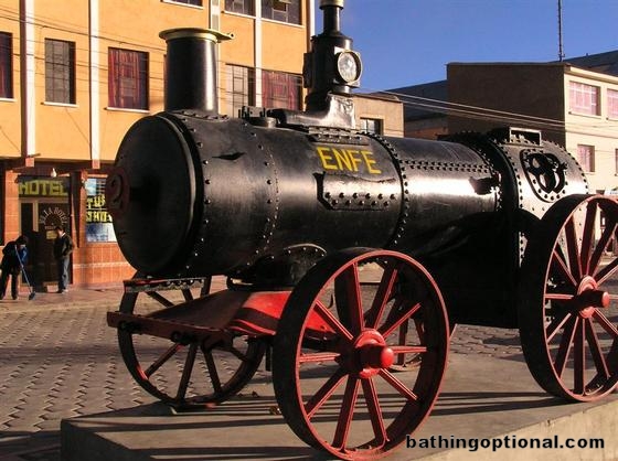 Once a very important rail hub in the mining heartlands of South America, old locomotives still line Uyuni´s main street. Bolivia, Uyuni - 03-Sep-06
