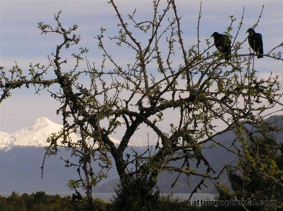 Crows with Volcan Hornopiren in the distance.