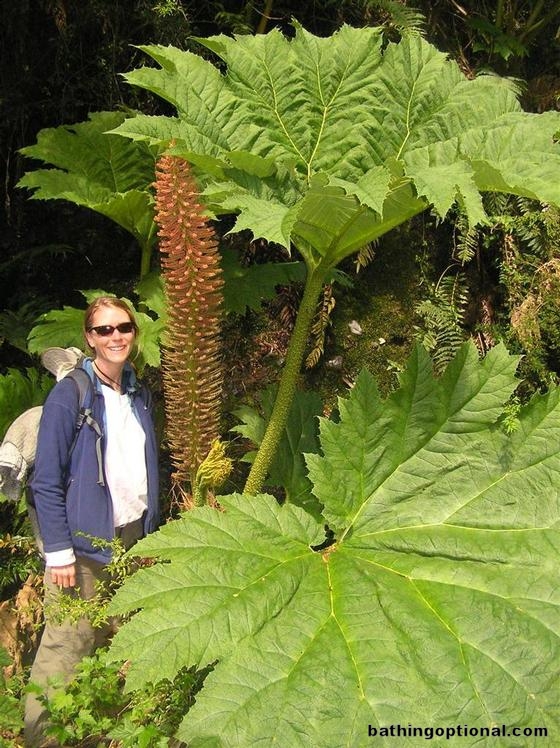 Ashe by the huge plants. They are looking mighty prehistoric. Chile, Pumalin Park, Carretera Austral - 16-Oct-06