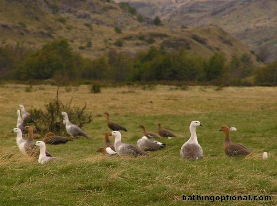 Local birds (ducks?). They always travel in paris -- one white, one brown. Chile, Torres del Paine National Park - 24-Oct-06