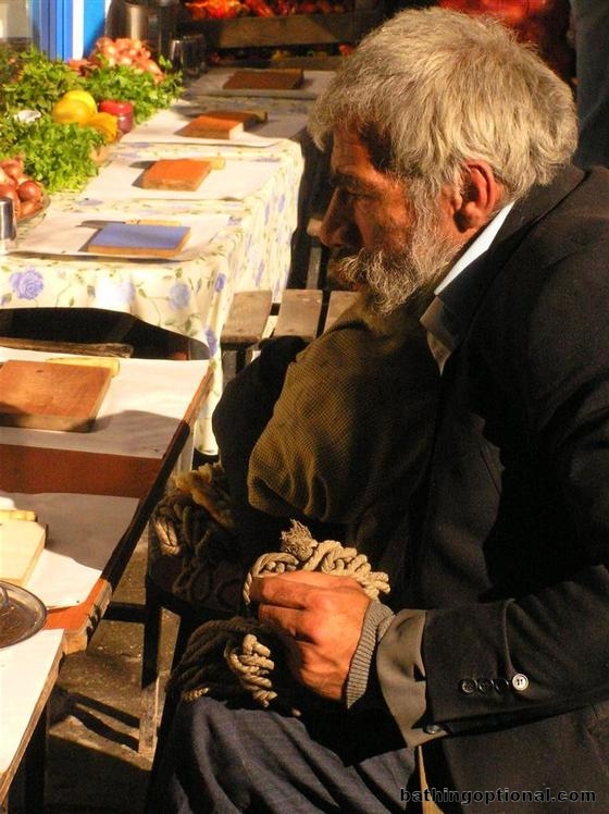An odd man we ran across over and over again who insisted on carrying rope around with him even while eating. Turkey, Sanliurfa - 01-Dec-06