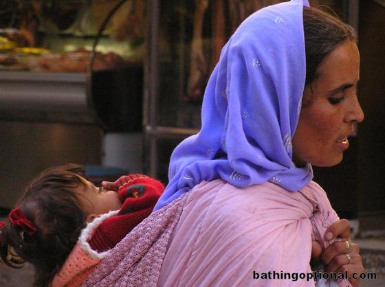 Lady with baby in the market.