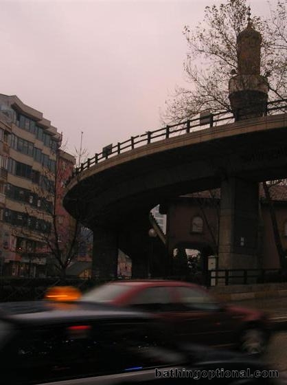 Mosque lost in the sprawl of the city but preserved and built around nonetheless. Turkey, Bursa - 12-Dec-06