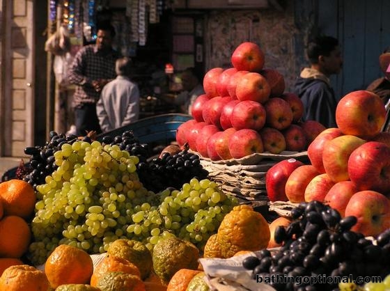Fruit stand. Unfortunately we are not confident enough with the un-peelable fruits yet to enjoy all this variety. India, New Delhi - 07-Jan-07