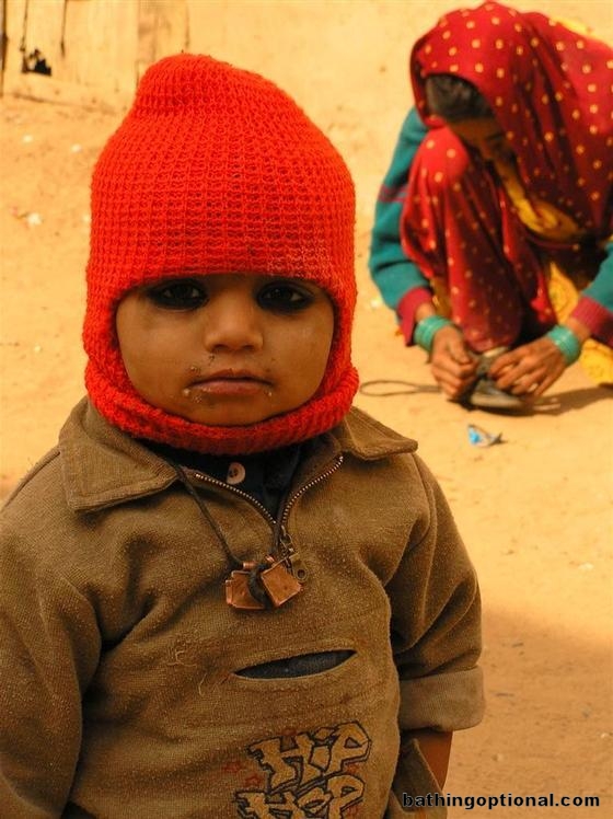 The son with some serious Marilyn Manson eyeliner on. We noticed lots of kids sporting the same look, a local custom we guess. India, Nawalgarh - 08-Jan-07