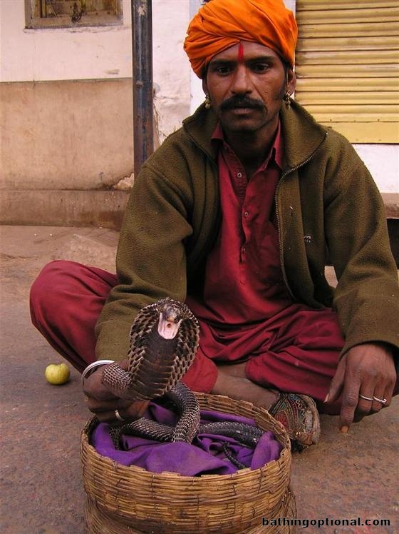 Wannabe snake charmer. He had to de-fang the cobra and force it to move around. Wheres the flute? India, Pushkar - 19-Jan-07