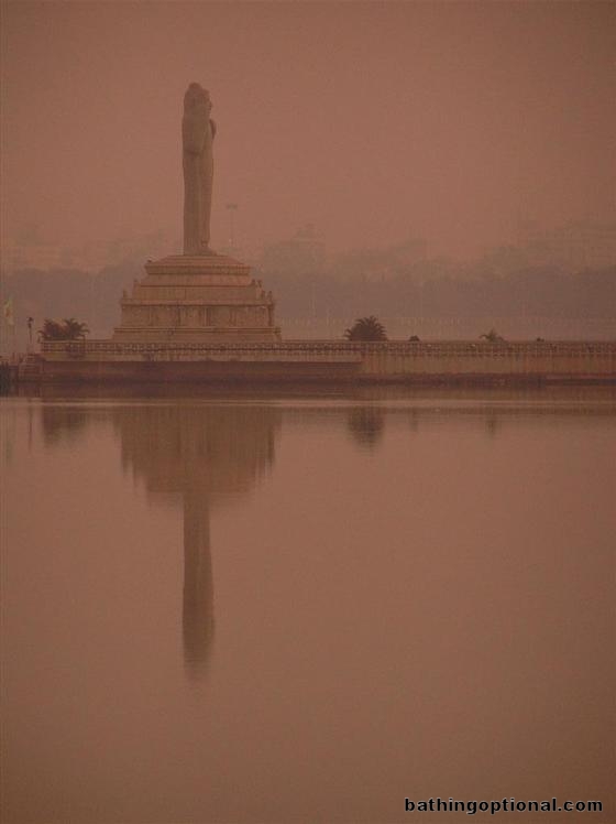 A long walk through busy Hyderabad brought us to the city reservoir with its statue of Buddha, one of the worlds largest. We could barely make the image out from a distance. India, Hyderabad (India) - 08-Feb-07