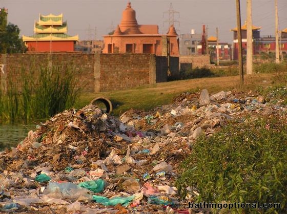 Garbage fills a roadside ditch in Bodh Gaya.