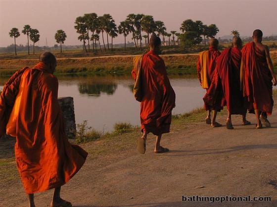 Monks on their way home at the end of the day.