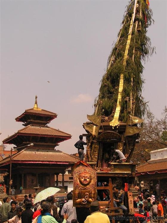 We arrived in Kathmandu in time for a festival during which this giant tree-like shrine is pulled around the city. Nepal, Kathmandu - 28-Mar-07