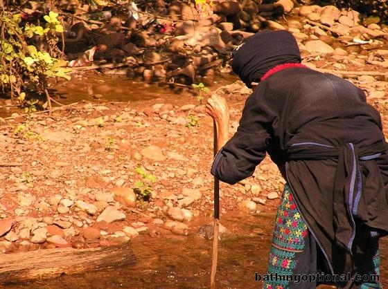 Lady by the village stream.