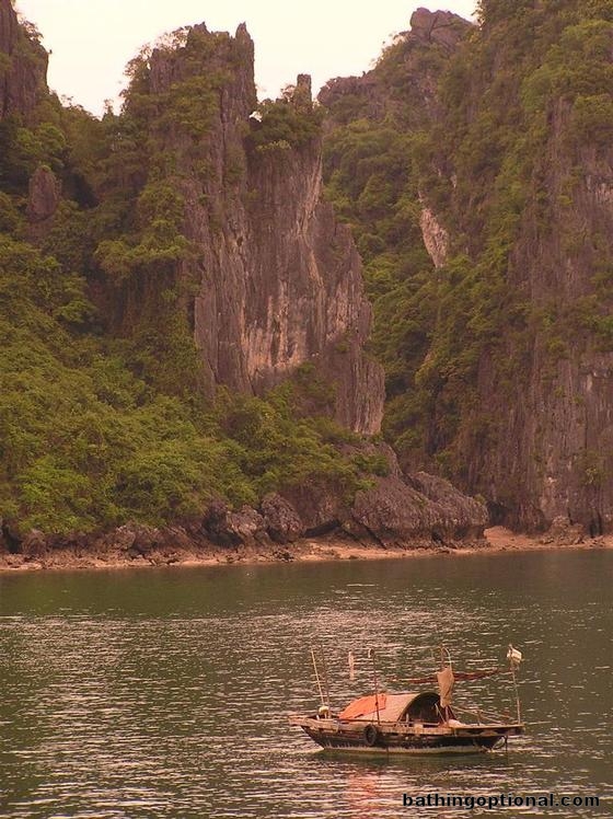Passing some of the limestone pinnacles that make Halong Bay the amazing place it is. Vietnam, Halong Bay - 25-May-07