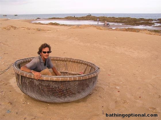 Maciej in one of those round fishing boats.