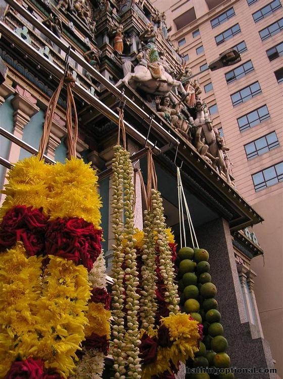 Garlands for sale in front of the temple.