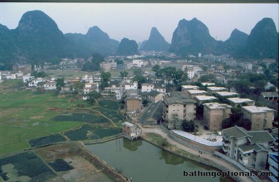 We even found a staircase winding its way up one of the karst peaks, climbed it, and were rewarded with this view. China, Guilin - 07-Feb-03